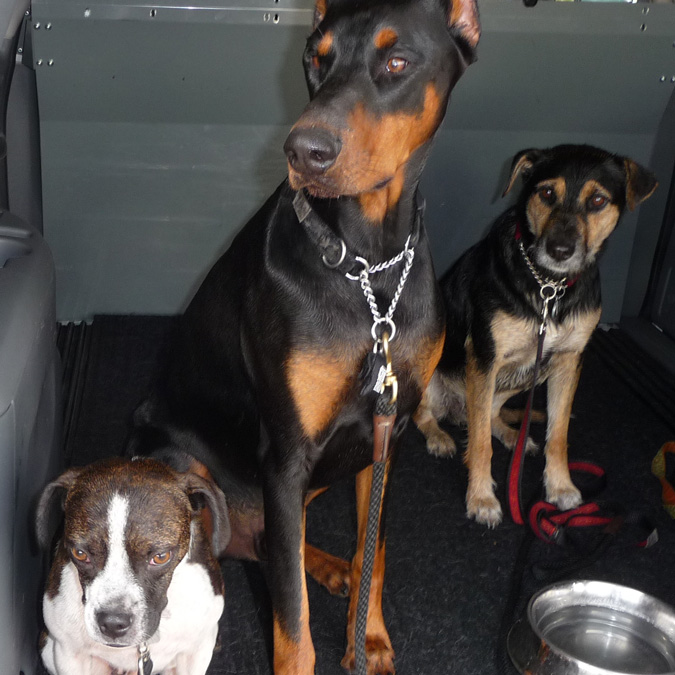 What do you find in the Poochmobile on a Friday Morning? Posted on September 7, 2013September 7, 2013 by MrPoochman Wistful worn-out wanderers, wet yet warm and wagging post-Pooch Walk….is the Poochwalk over for the day? Yes…George felt the same… Wistful-looking welcomely worn-out and wet-yet-warm wagging-tailed wanderers, post Poochwalk. See you next week boys. Share this:Tweet Click to email a link to a friend (Opens in new window) Email Click to print (Opens in new window) Print Like Loading... Related