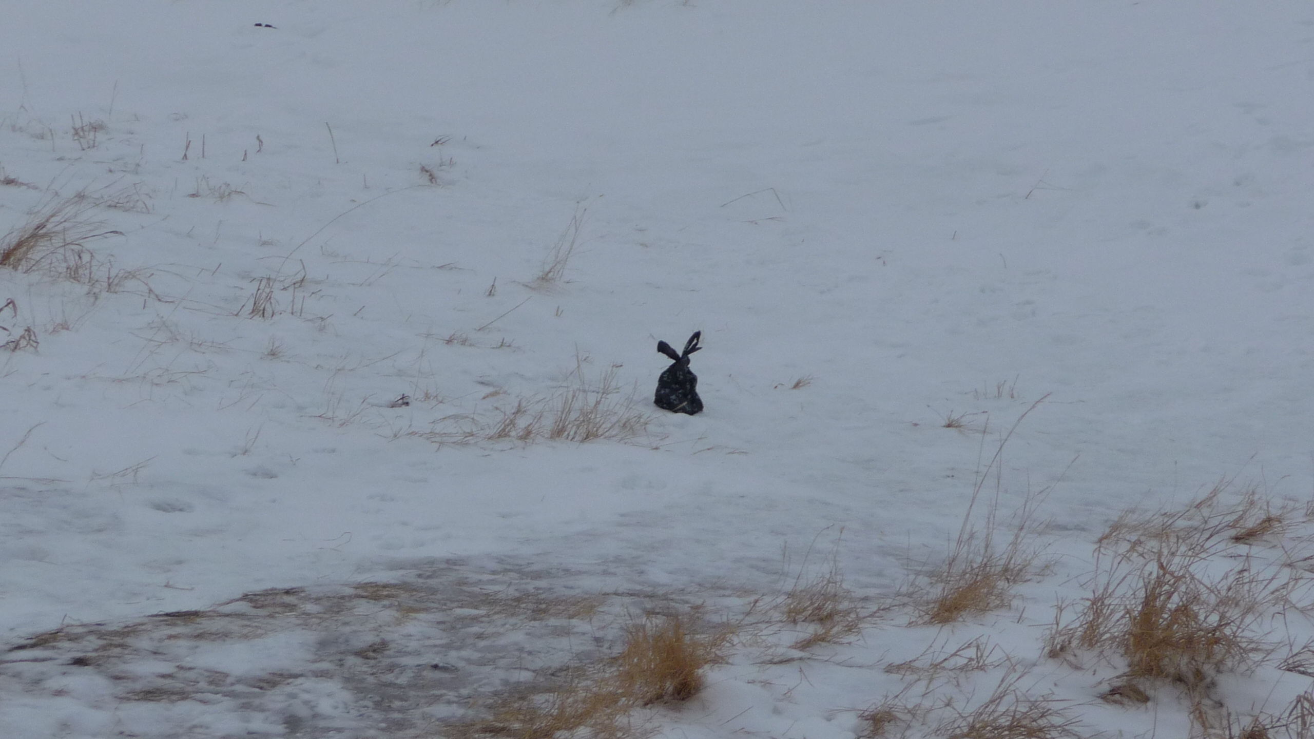 The afternoon Pooch Walk boys were excited to see what they thought was a black rabbit at Nose Hill today.