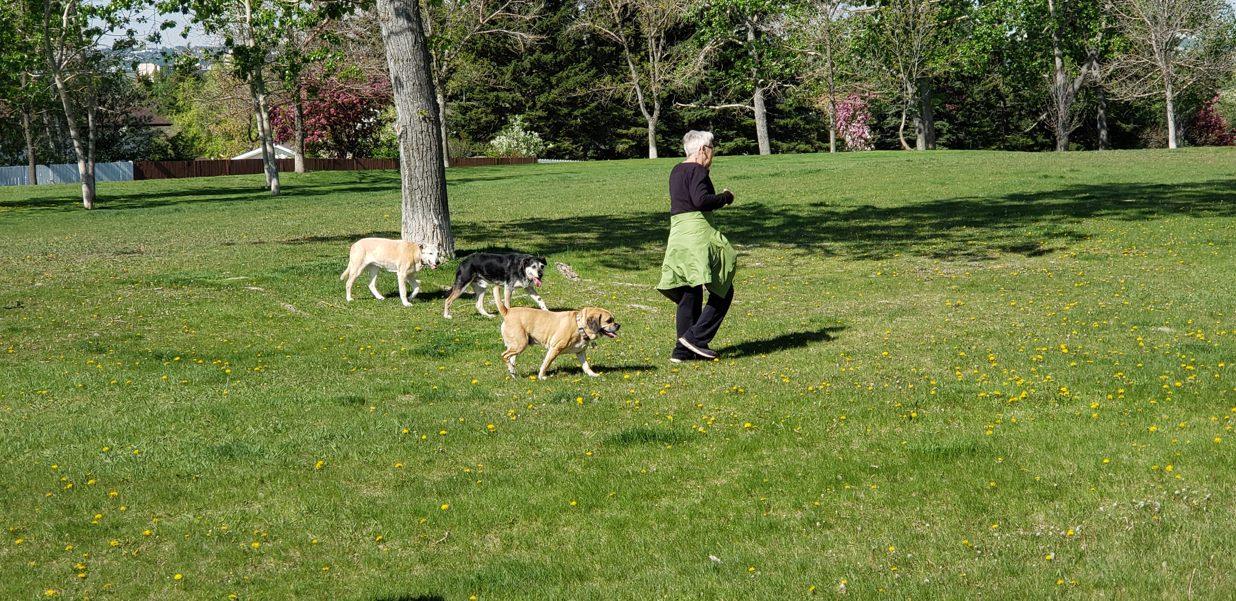 Fran was in to walking with me and the pooches from very early in the Pooch Walk journey. Ice or snow, wind or rain, hail, sandstorms and, of course sun and heat. Regardless, Fran was always there… suitably dressed and ready to roll.