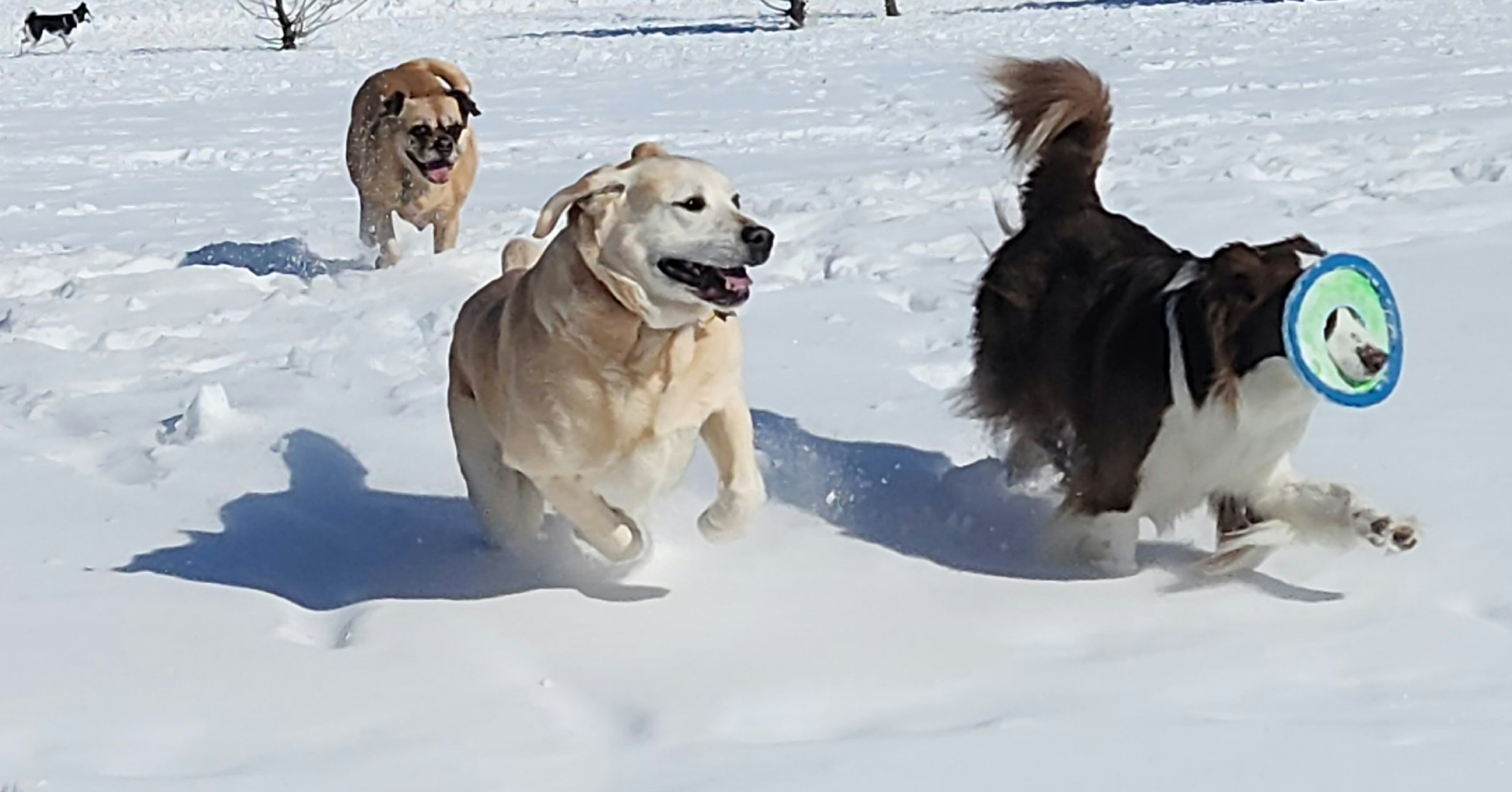 The popular icon is alive, well and enjoying a chase in the local dog park…!