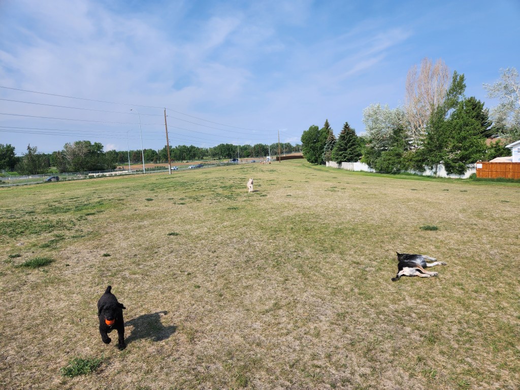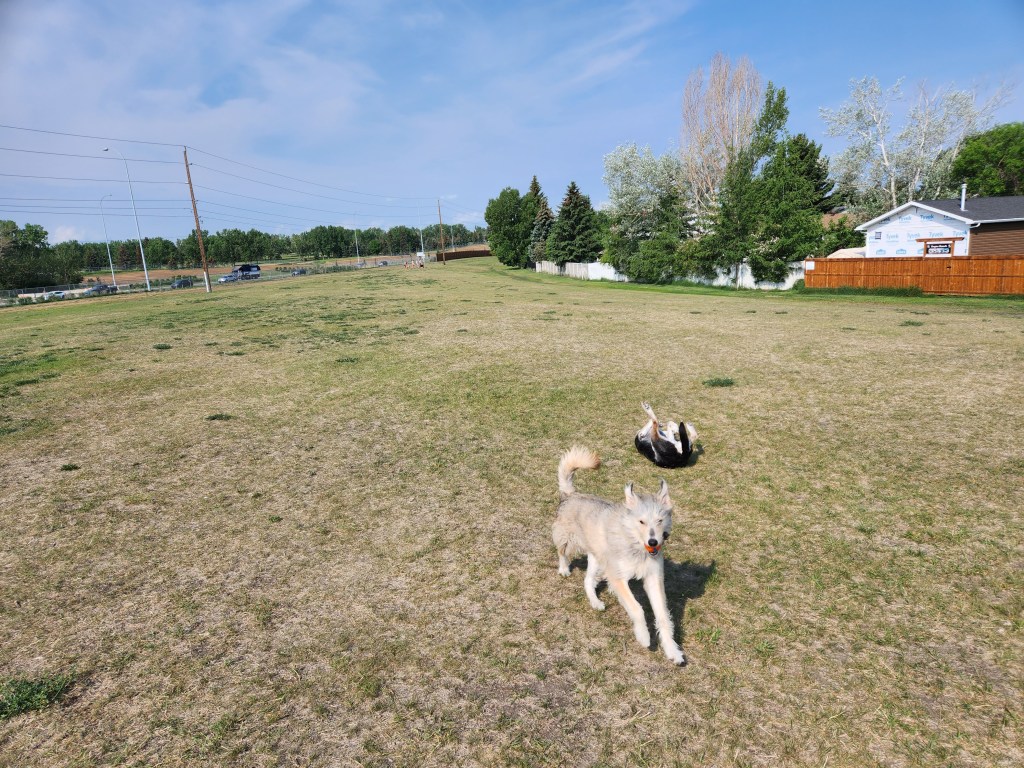 Whilst at the park she practiced her recall… and very good it was too… in spite of Angus trying to put her off by doing his legendary “pin wheel” ninja move !